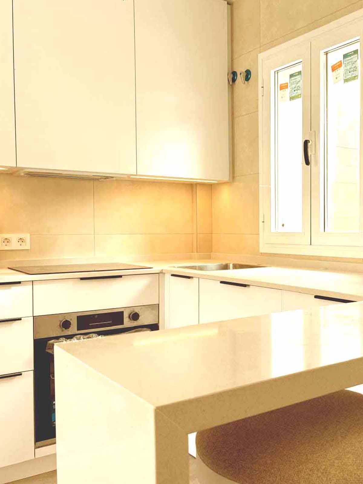 Cada vivienda dispone de una cocina totalmente equipada, creando junto a su salón, un ambiente amplio y luminoso.